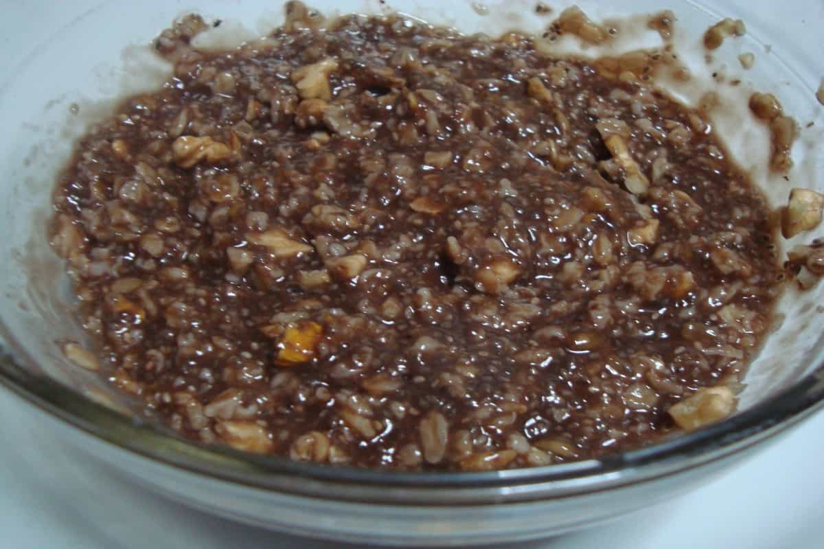 En un recipiente remojar por 20 minutos la chía, con 4 cucharadas de agua. Transcurrido el tiempo de remojo la chía se tornara espesa y habrá soltado una especie de gel.