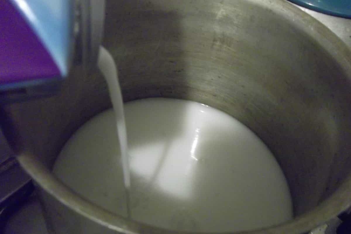 1. En una olla, verter la leche vegetal y poner a calentar a fuego lento