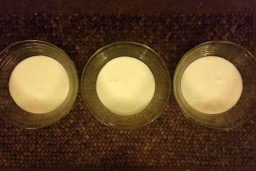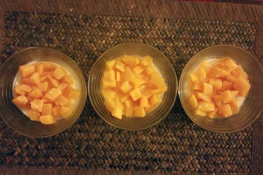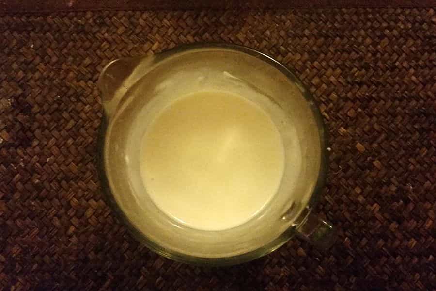 Mientras dejas que se enfríe por 3 minutos, vierte el contenido de los yogurts en una fuente (si quieres agrega una pizca de esencia de vainilla o jugo de limón).