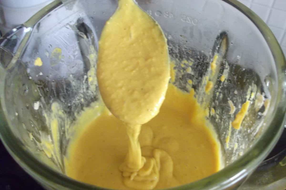 3. Licuar los ajíes con la leche, el aceite, las galletas, la sal y la pimienta, procurando obtener una salsa espesa. Ir probando con leche y galletas hasta lograr la consistencia deseada. De lo contrario, agregar más galletas.