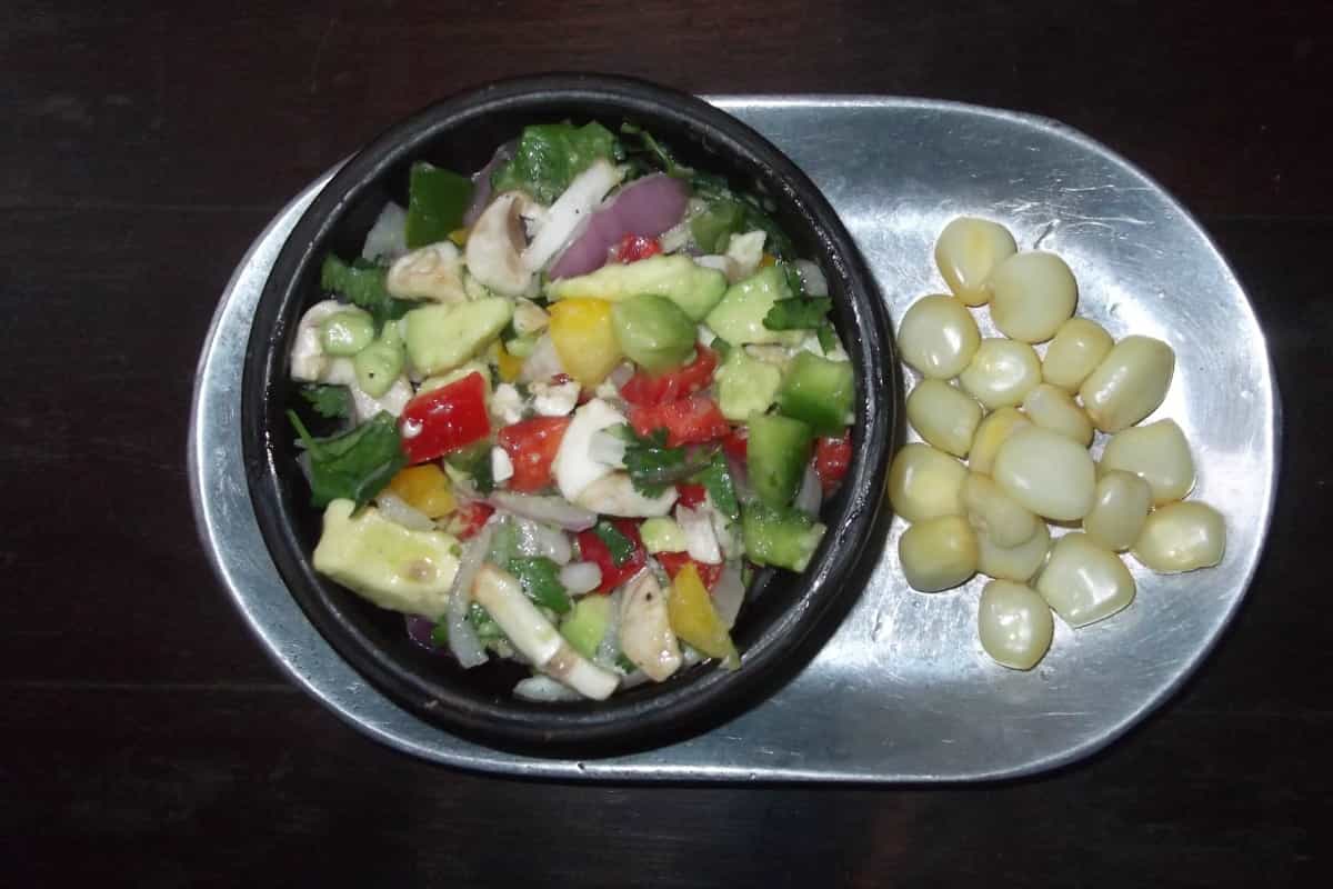 4. Mezclamos todo y servimos en recipientes pequeños, con el choclo a un lado. Disfruta este delicioso plato como entrada o como plato principal acompañado con unas ricas papas con salsa huancaína vegana.