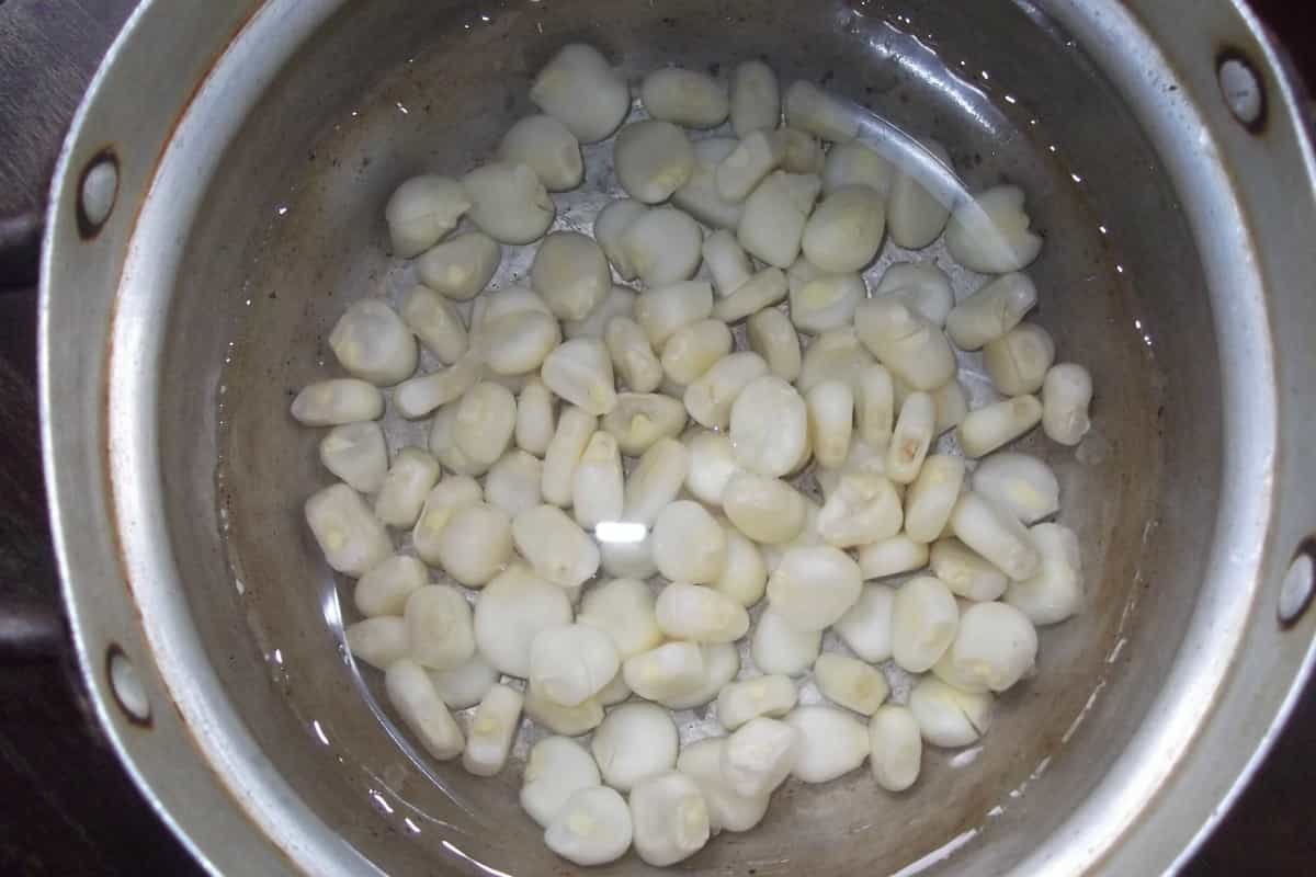 1. Ponemos a cocer los granos de choclo en agua que apenas los sobrepase, durante aprox. 15 min.