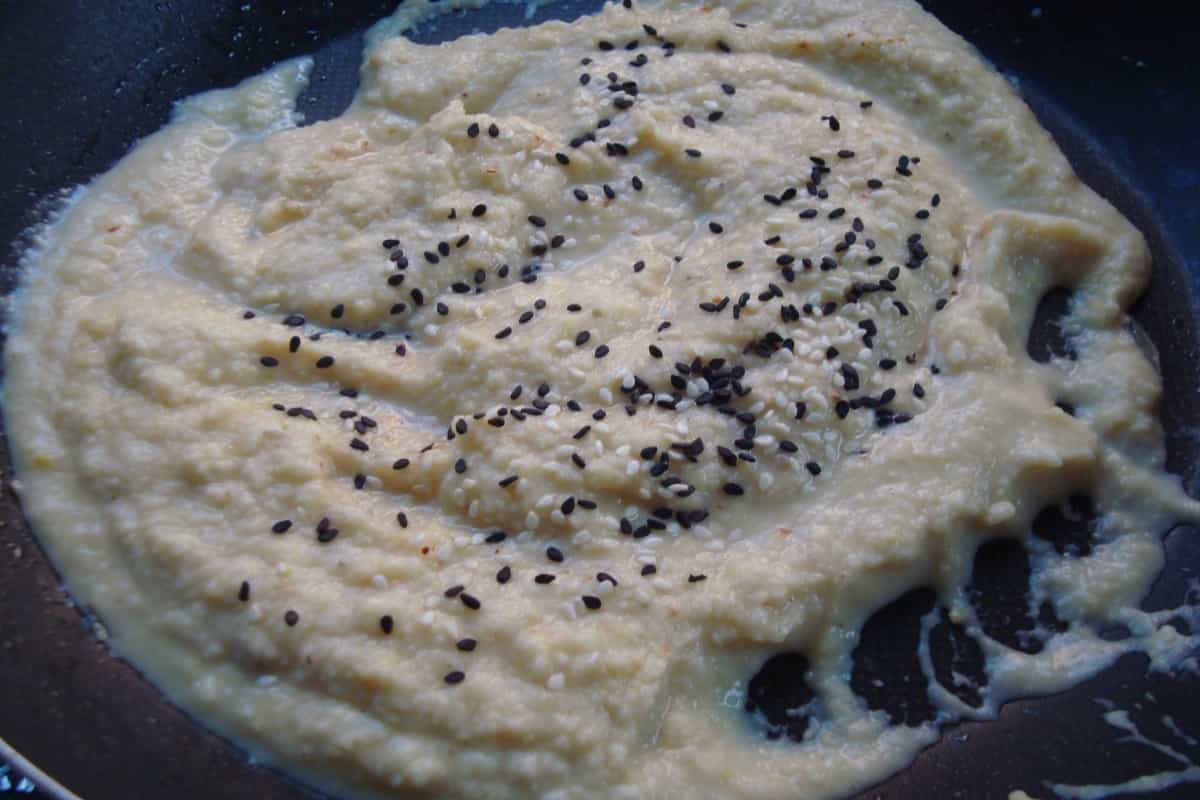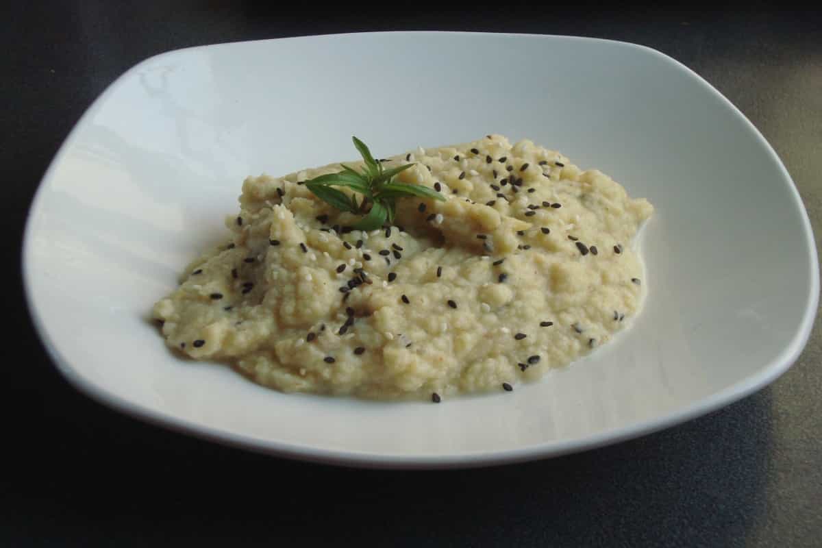 Triturar hasta conseguir una preparación homogénea (puedes agregar líquido de la cocción para obtener una consistencia más cremosa). Rectifica la sazón, agrega el jugo de limón y las semillas de sésamo tostadas. Revuelve y sirve.