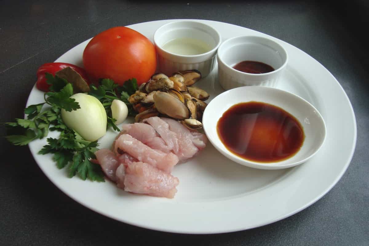 - 1 kilo de mariscos surtidos congelados o 2 kilos de mariscos frescos con sus conchas