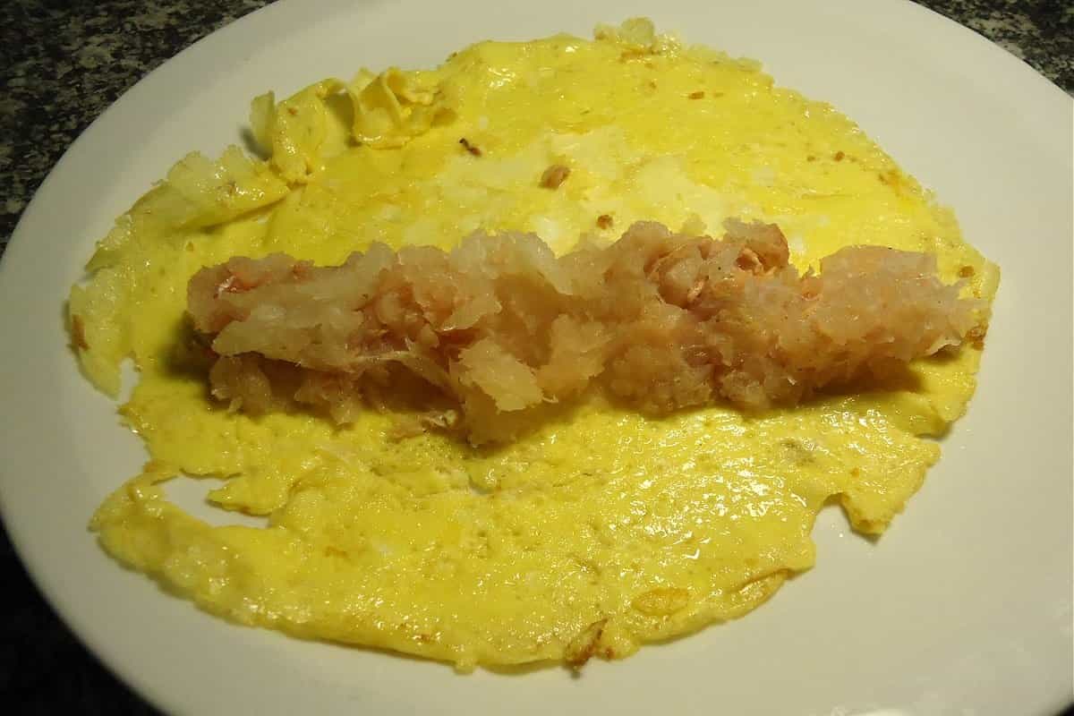 Cuando la tortilla esté lista, ponla en un plato y rellena con la carne del pescado que habíamos reservado.