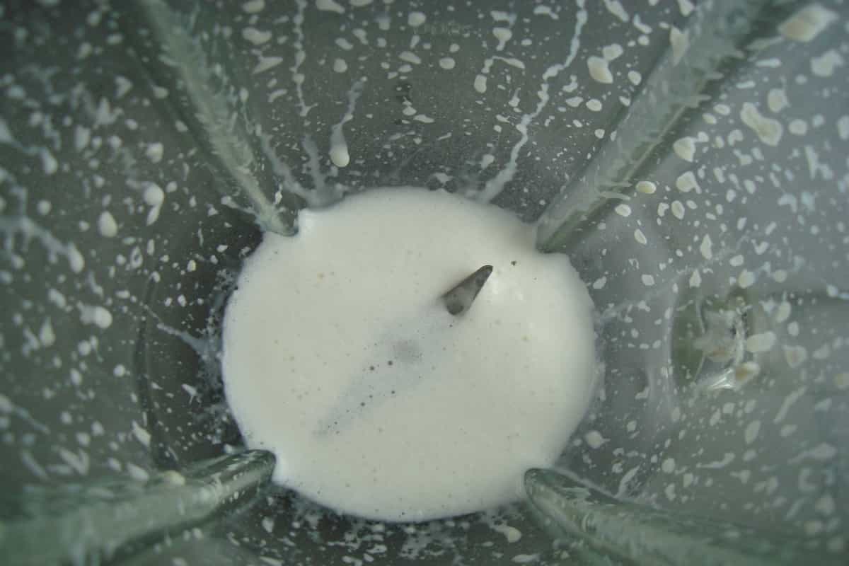 Nota: cuando incorpores el aceite, la juguera debe estar siempre funcionando. Otra cosa importante es que la cantidad de aceite (1/2 a ¾ de taza, dependiendo de la consistencia que quieras para tu mayonesa).