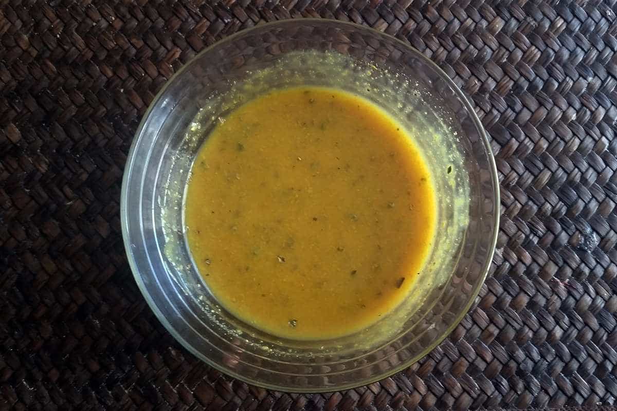 Mientras tanto mezclamos la mostaza con la mitad de la ración de jugo de limón, el orégano y la pimienta. Revolvemos bien para que todo quede bien incorporado.