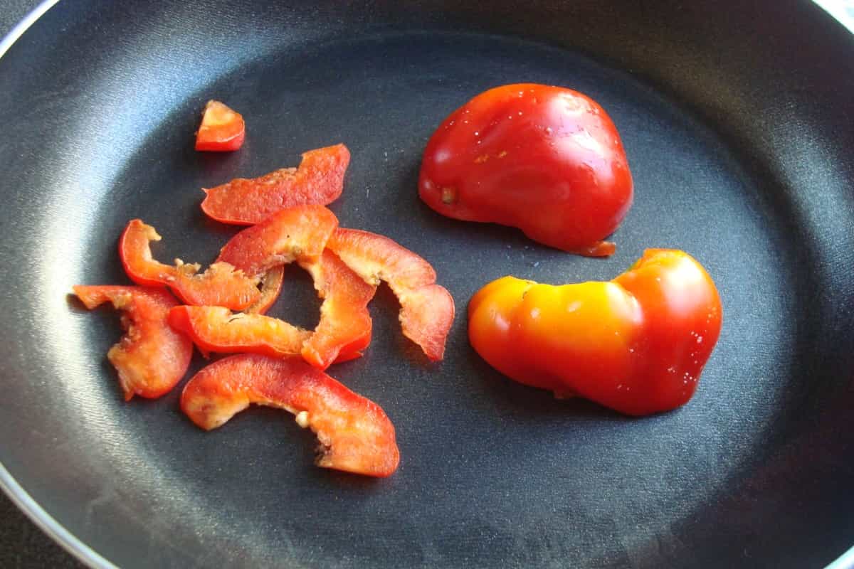 Partir los pimentones por la mitad (o en rodajas), eliminando las semillas y los tallos. Salpimentarlos y asarlos por 2 minutos. Retirar del fuego, untar con mantequilla y espolvorearles queso rallado.