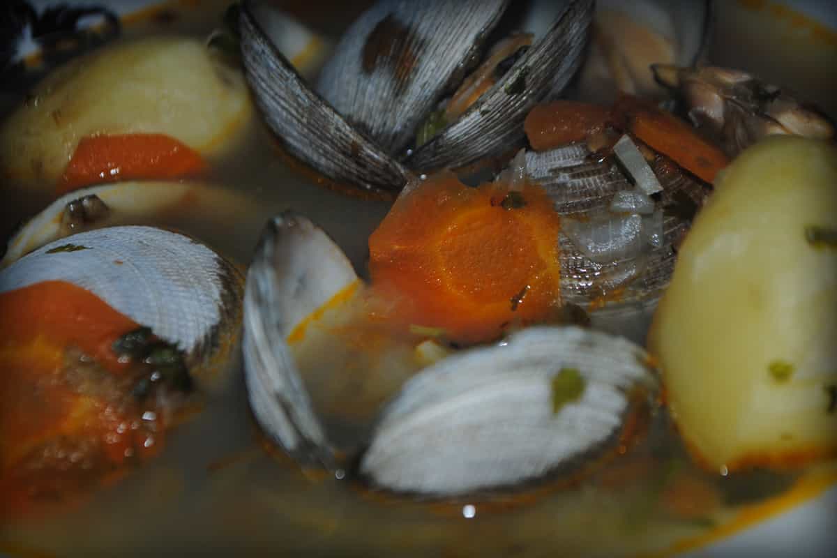 Una vez transcurrido ese tiempo, agregamos a la olla las papas y las almejas y cocinamos a fuego lento. La señal para saber cuando están listas nuestras almejas es que se abran. Finalmente agregamos un poco de cilantro, que le da un sabor y toque especial a la sopa. También, si gustan de los picantes, pueden agregar un poco de ají color y merkén al plato.