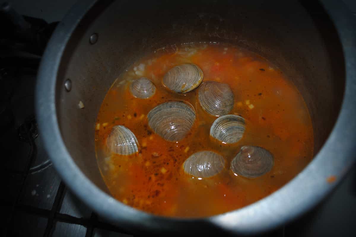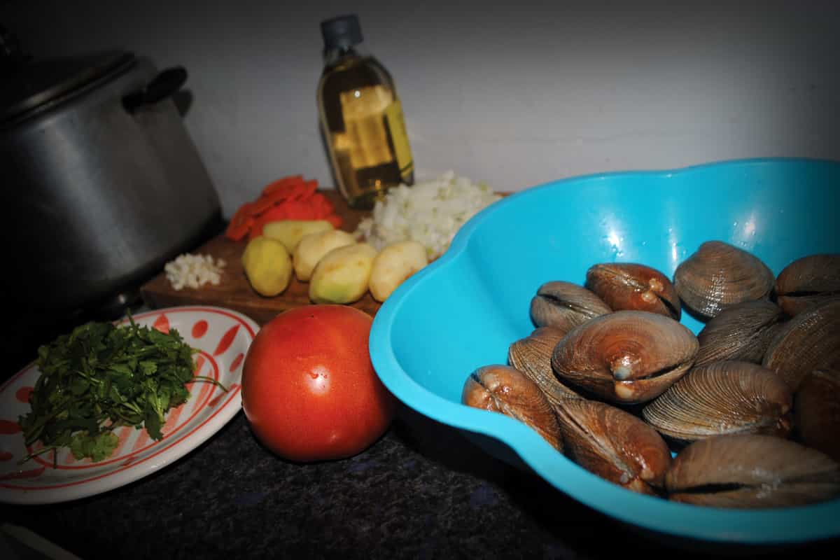 Lo primero que hay que hacer al cocinar esta receta es lavar bien las almejas, que por lo general puedan venir con un poco de arena. Luego de eso, preparamos una olla donde echaremos el aceite, la cebolla, ajo, zanahoria, tomate, aliños y sal a gusto, dejando que se cocine durante unos minutos. Posteriormente, incorporamos el agua y el vino, dejando hervir durante 15 minutos.