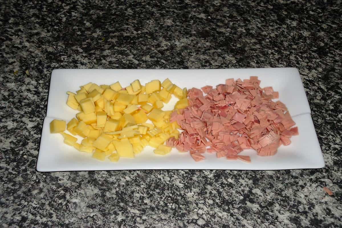 Pica la jamonada y el queso en trozos pequeños y reserva.
