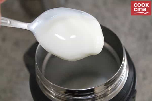 Revolvemos bien y cerramos el termo y dejamos el yogurt fermentar por cuatro horas (si lo dejamos más tiempo puede existir riesgo de infección por bacterias). Pasadas las horas, abrimos el termo, quitamos el suero con un colador y revolvemos nuevamente la mezcla para que quede homogénea. Guardamos el yogurt en un recipiente con tapa hermética y lo dejemos en el refrigerador toda la noche. A la mañana siguiente podremos disfrutar de un rico y sano yogurt hecho por nosotros mismos, ¿qué mejor desayuno?