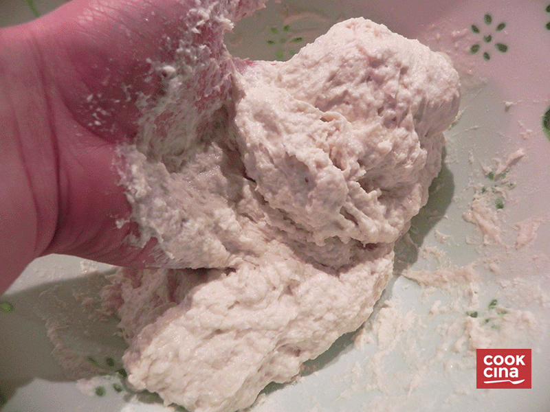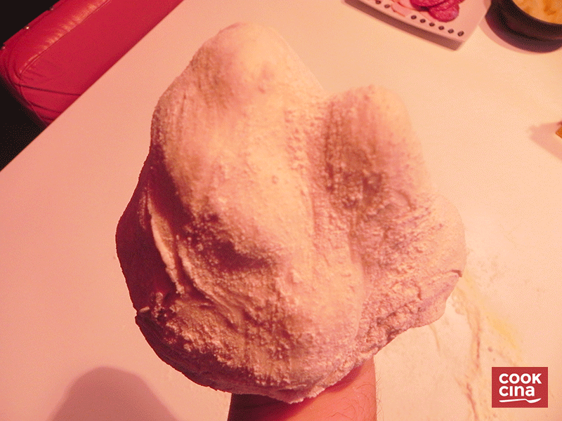 Estos bollos los debes colocar tapados al refrigerador y dejar reposar al menos 1 hora (idealmente de un día para otro) Luego, debes volver a amasar cada bollo. Si tienes destreza, intenta "airear" la masa, realizando piruetas en el aire. Para quien no domina esto aún (se incluye al autor) puedes colocar tu puño bajo la masa y girarlo, así: