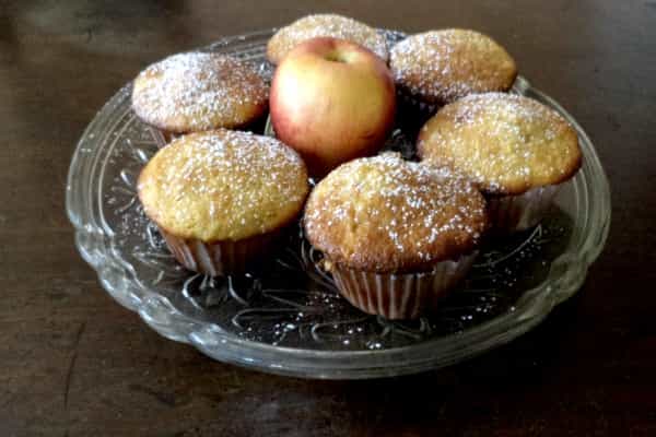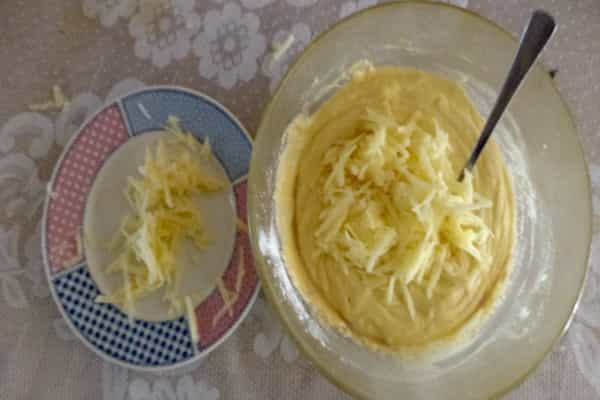 2. Estos quequitos no los haremos con trozos grandes de manzana, sino más bien, con manzana rayada. Así es que raya las 4 manzanas y agrégalas a la mezcla anterior. Debes unir con firmeza, para que no se formen grumos.