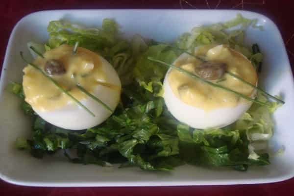 Dicen que el huevo es la mejor proteína que podemos consumir, dado sus increíbles aportes a nuestra nutrición diaria. Y como a todos nos gusta comer saludable pero a la vez muy rico, te presentamos estos deliciosos y entretenidos Huevos a la Tártara, receta con la que puedes transformar los típicos huevos duros en un verdadero picoteo gourmet. La preparación es simple y el resultado fantástico, ya que allí se unen la suave textura de los huevos con el fresco e increíble sabor de una buena salsa tártara hecha en casa. ¡Recuerda hacer varios, ya que se harán pocos con el éxito que tendrán. Ingredientes (2 porciones) -4 huevos cocidos -1 cucharada de alcaparras -1 cucharada de ciboulette picado -1 cucharada de cebolla picada fina -1 diente de ajo picado fino -1 cucharada de mostaza -100 centímetros cúbicos (cc) de mayonesa -50 gramos de pepinillos -Sal - Pimienta Preparación Cortar la parte superior de los huevos y retirar con la punta de un cuchillo la yema, cuidando de no romper la clara del huevo.