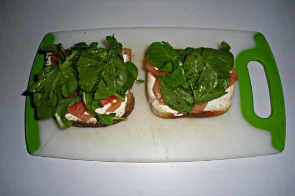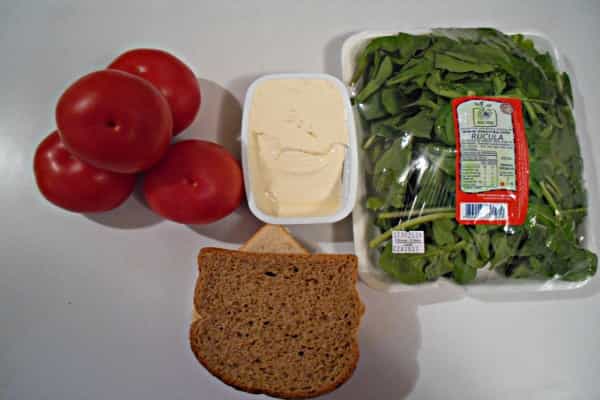 Preparación: Lo primero es lavar muy bien la rúcula, luego calentar el pan para que esté más crujiente; cuando esté completamente listo unta el queso crema en una de las rebanas, la idea es ser generosa, ya que su sabor es muy agradable; después, tras pelar y lavar el tomate, cortar en rebanadas y agregarlo al emparedado.