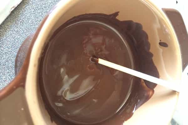 El último paso será el baño en chocolate. Pueden derretir la cobertura en microondas o a baño maría, procurando no quemar el chocolate.