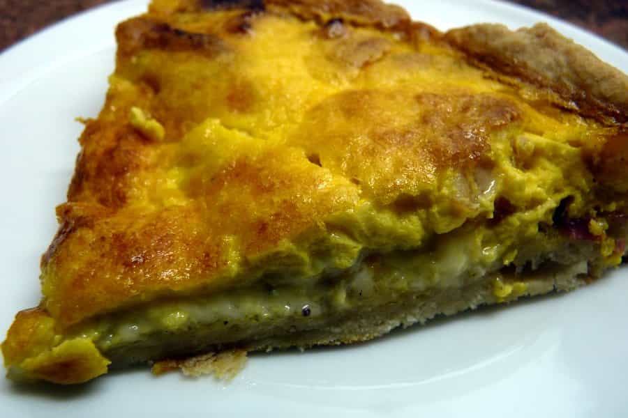 Los quiche son una preparación tradicional de la cocina francesa que consisten básicamente en una masa abierta rellena con una mezcla de huevos, queso, verduras y carnes. El quiche Lorraine es una de las más ricas y populares versiones de esta preparación francesa. Ingredientes Para la masa 1 taza de harina sin polvos de hornear 6 cucharadas de mantequilla Agua tibia 1 pizca de sal Para el relleno 100 gramos de tocino 2 huevos grandes 2 yemas de huevo 1 taza de queso gruyere rallado ¾ taza de leche entera ¼ cucharadita de pimienta fresca molida 1 pizca de nuez moscada Porciones 4 porciones Preparación