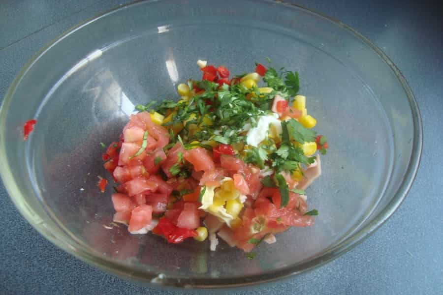 Llegan las estaciones cálidas del año y la consigna "por un verano sin polera" empieza a sonar fuerte entre risas al ver que el sol se asoma y la ropa de aligera. ¿Pero por qué este plan debe ser siempre una tortura? Ya sea que quieras empezar una dieta o simplemente que goces de la comida saludable, esta receta es para ti: Prepara una rica Palta primavera, deliciosa y colorida entrada que se convertirá en la reina de tu mesa por su increíble mezcla de sabores. ¡Además, es muy fácil de preparar! Ingredientes (4 porciones) -½ taza de jamón picado -1 taza de choclo cocido -1 tomate -½ pimentón picado en cubos -1 lechuga picada fina -3 cucharadas de cilantro picado -2 huevos duros -4 paltas -Jugo de 1 limón -Aceite -Sal - Pimienta Preparación En un recipiente mezclar el jamón, choclo, tomate pelado y picado en cubos pequeños, pimentón, y cilantro, sazonar a gusto.
