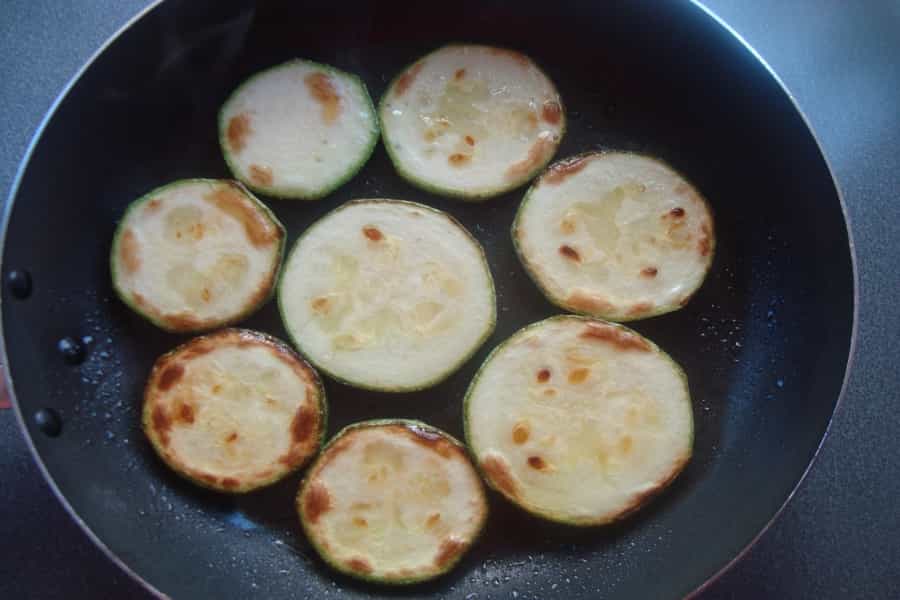 Retirar e insertar un palo de brocheta o un palo de helado. Puedes bañar con chocolate, con miel, espolvorear coco o chispas de colores. Para los montaditos de zapallo italiano: lavar el zapallo y cortar rodajas de 1 centímetro, sazonar. En un sartén con aceite caliente grillar las rodajas de zapallo por 30 segundos, dándolas vuelta.