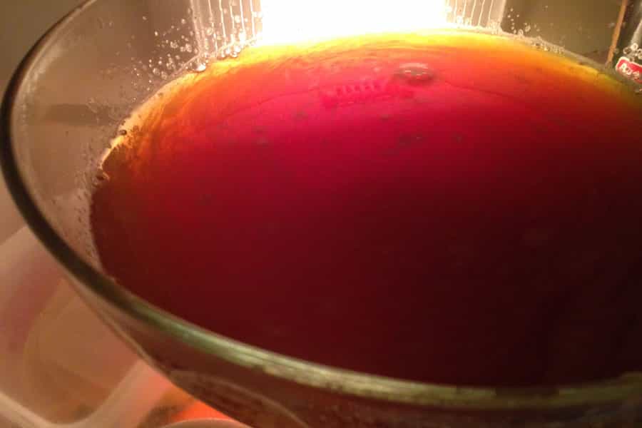 Ahora mezclas ambas preparaciones. Cuando metas la gelatina al frío, puede tardar entre 2 o 4 horas en estar lista para servir.