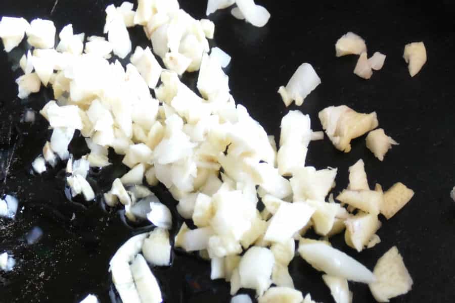 Picamos el ajo, y lo ponemos a freír en aceite.