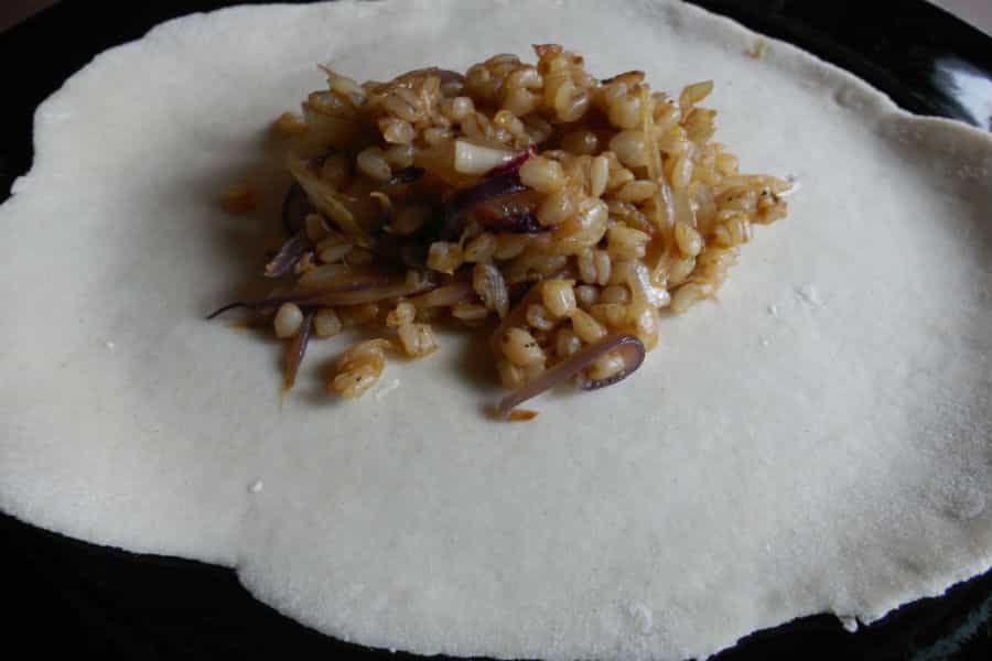 Luego dejamos enfriar un momento nuestro pino. Cuando ya esté a temperatura ambiente, con la ayuda de una cuchara, vamos rellenando nuestros hojaldres de empanadas, dándoles la forma que más nos guste.