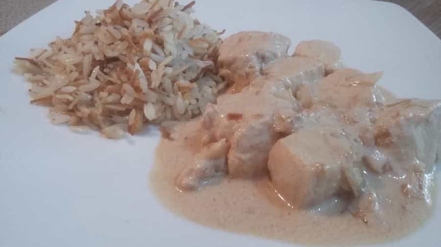 Sirve el pollo acompañado de puré de papas o arroz y báñalo con la salsa de yogurt, simplemente exquisito