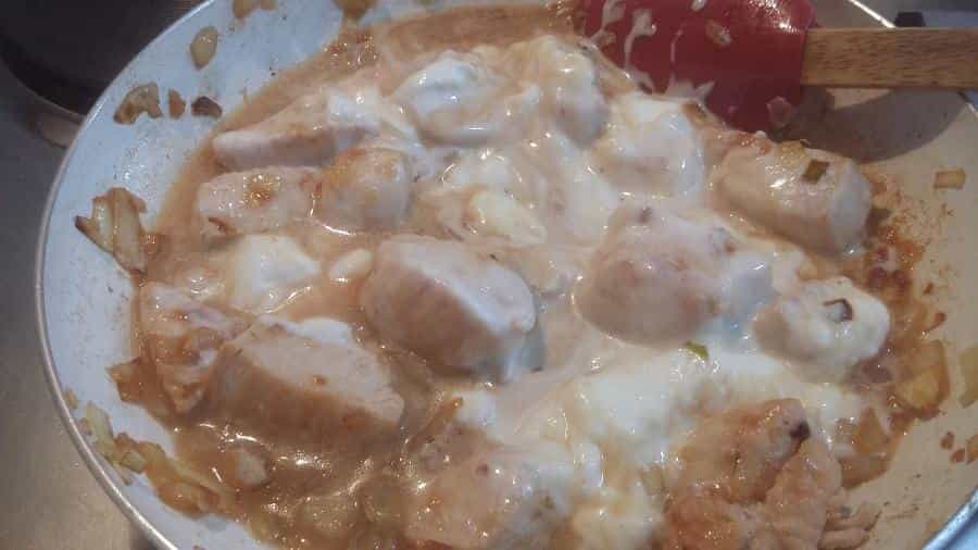 Una vez dorado el pollo, agrega al, el zumo del limón y los yogurts. Déjalo cociendo por 10 minutos.