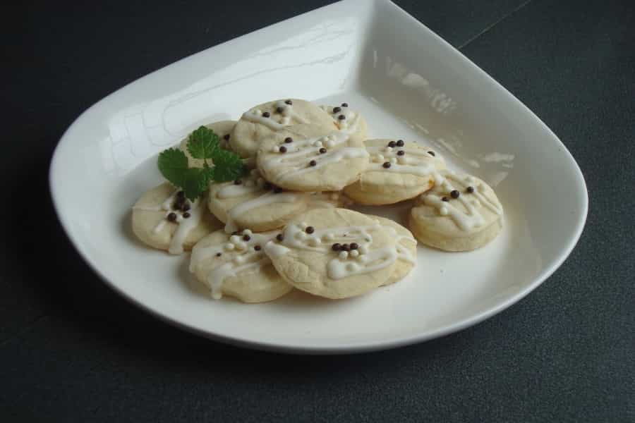 Hornear en horno precalentado por 10 a 15 minutos o hasta que las galletas estén apenas doradas en su base. Retirar la bandeja del horno, dejar enfriar y sacar las galletas de la lata de horno. Una vez que las galletas de coñac estén frías, decorar a gusto.
