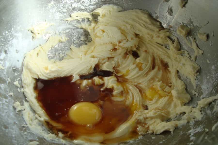 En un recipiente, mezclar la margarina y el azúcar flor; batir hasta obtener una consistencia cremosa y homogénea. Agregar una a una las yemas, el coñac, vainilla y ralladura de limón. Batir hasta homogenizar.