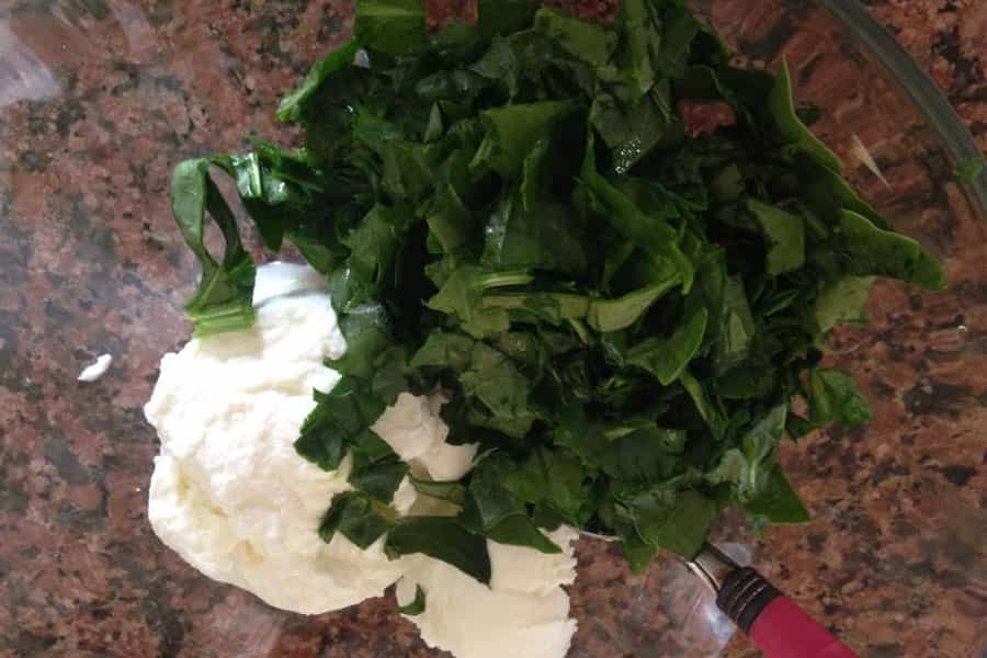En un bowl y con ayuda de un tenedor, juntarás la ricotta con la espinaca. Puedes hacerlo también con una minipimer.