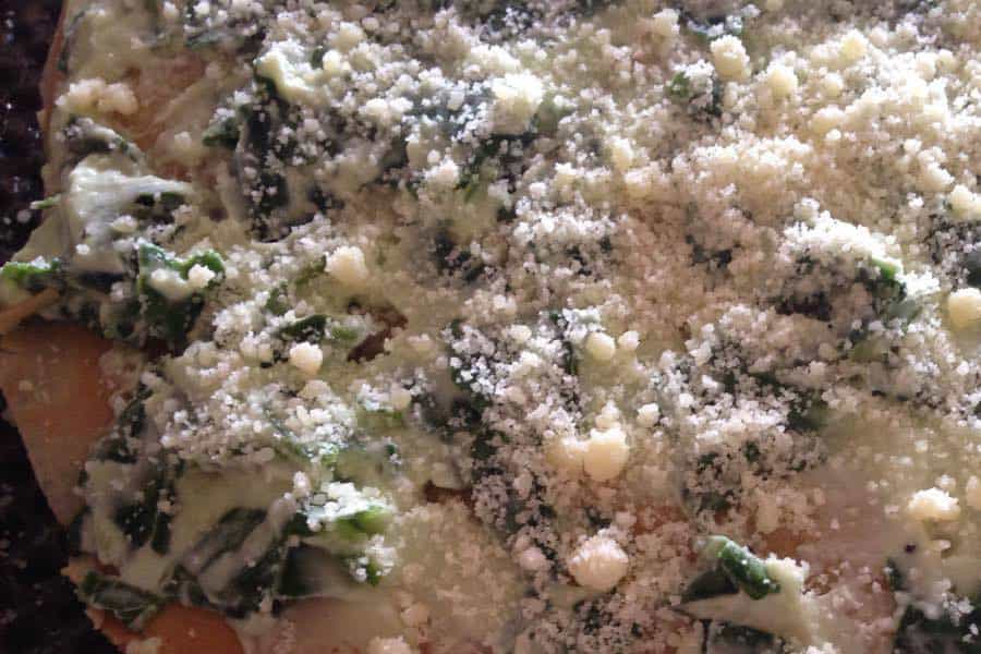 Mi última capa la hice de espinaca con ricotta, y aparte le agregué queso rallado. Ideal para que quede doradito.