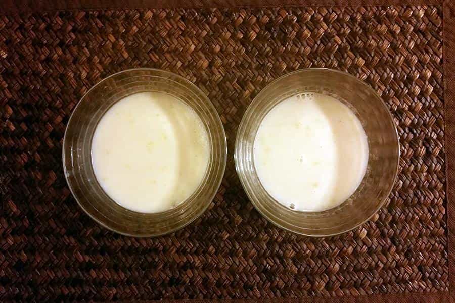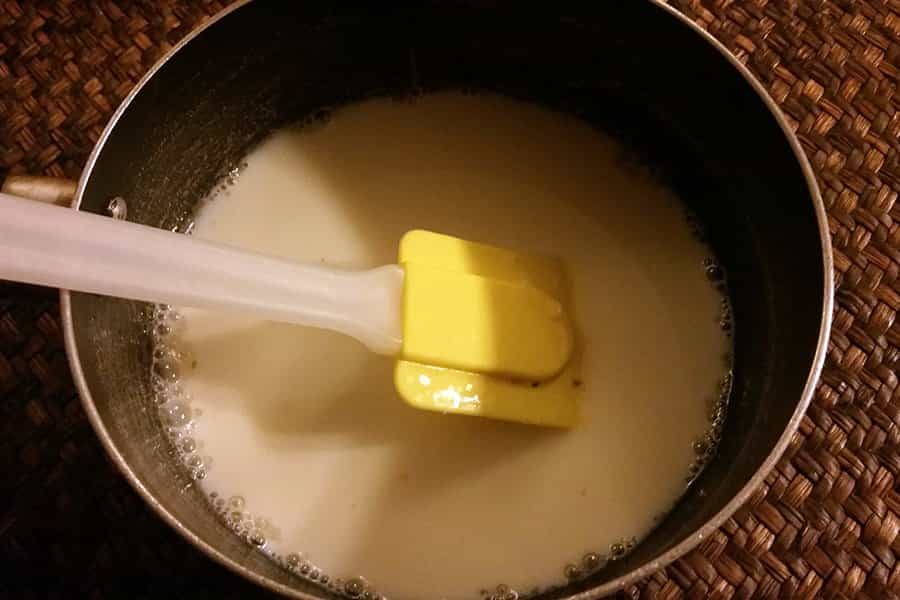 Lo primero que haremos será hervir la leche con el azúcar. Esto debe hacerse con mucho cuidado, ya que un minuto que te pases terminará por cortar la leche. Recomendamos poner a fuego bajo y apenas dé el primer hervor, retirar.