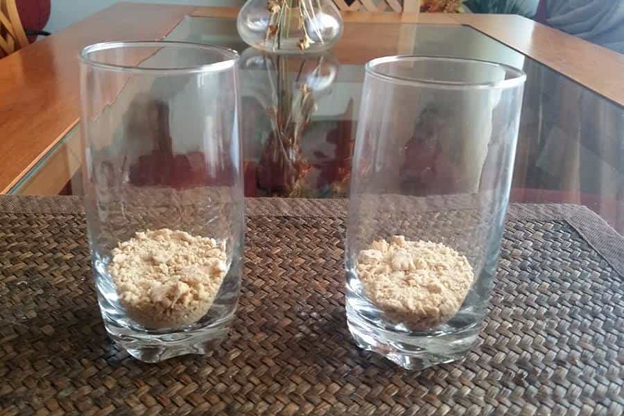 Lo primero que haremos será distribuir las galletas en 2 vasos. La idea es que sean dulces.