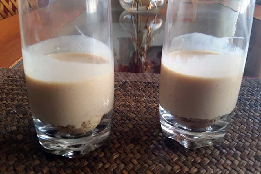 Pasado los 30 minutos, retira los vasos del refrigerador y vierte el merengue sobre ellos. Vuelve a refrigerar por al menos 20 minutos más.