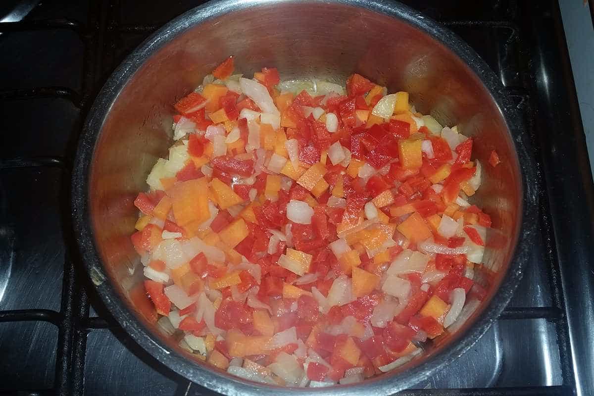 Una vez cocidas, agregamos el pimentón y sofreímos por 4 minutos más.