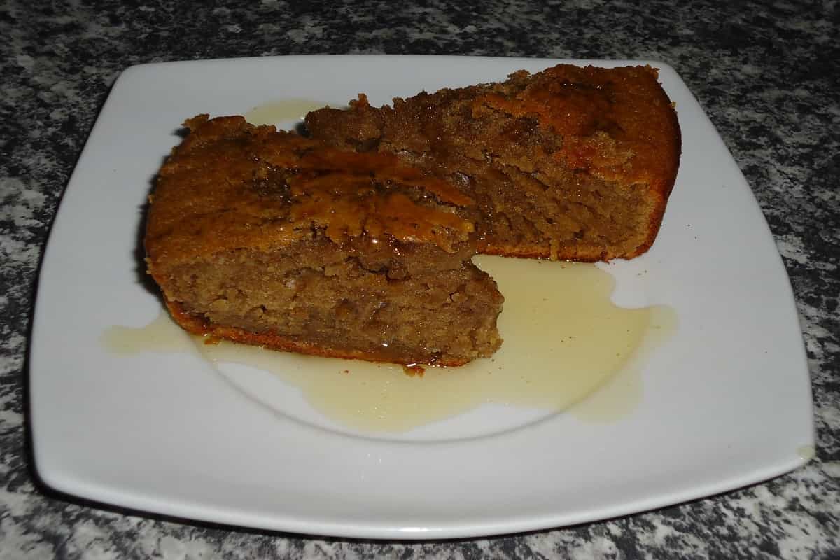 Para montar el plato te sugiero bañar el bizcocho con un poco de miel tibia, la mezcla de los sabores es simplemente deliciosa.