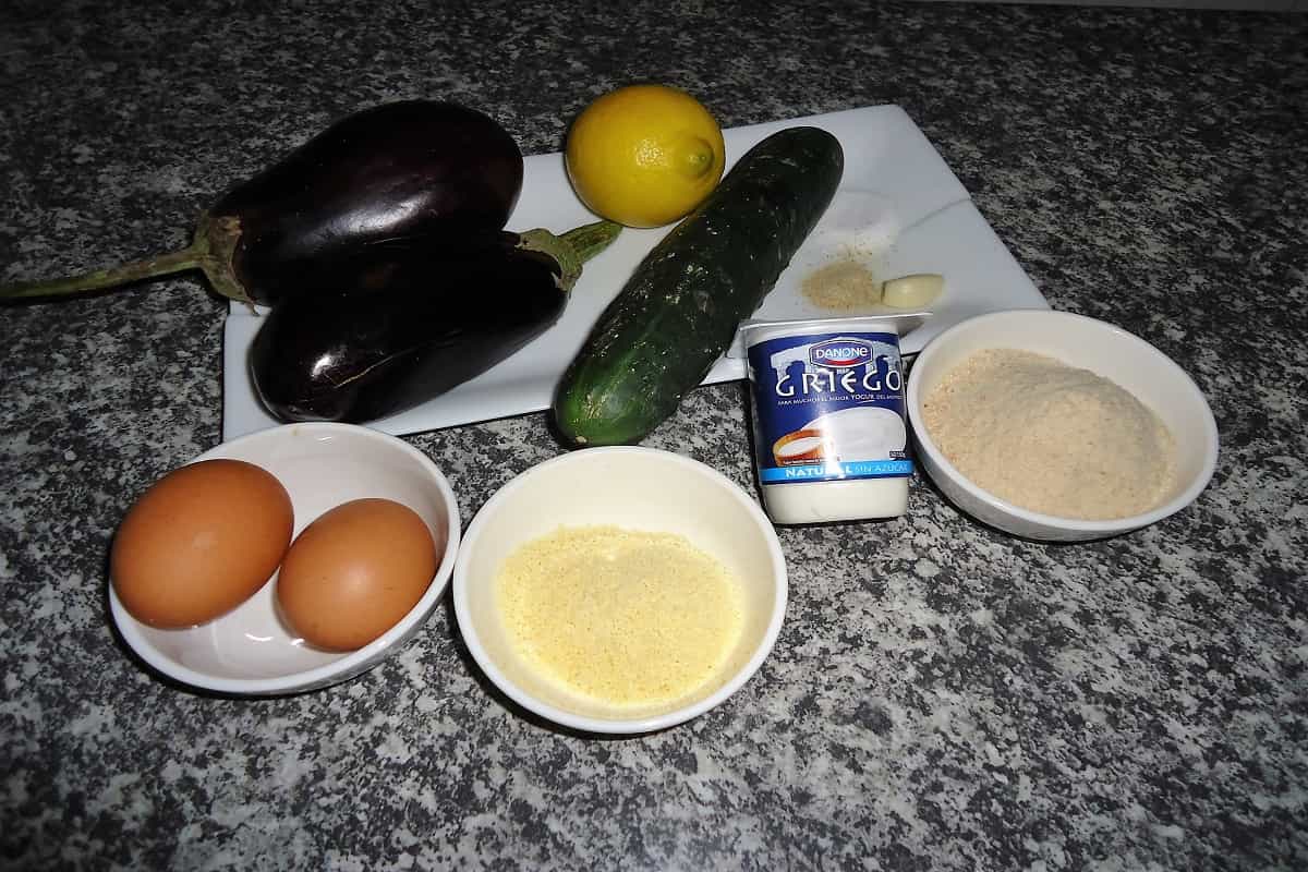 Para montar nuestro plato, pon las berenjenas fritas junto a un recipiente con la salsa de pepino y yogurt. ¡La combinación es simplemente deliciosa!