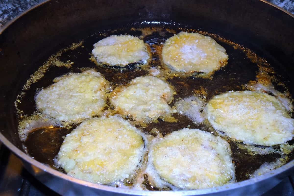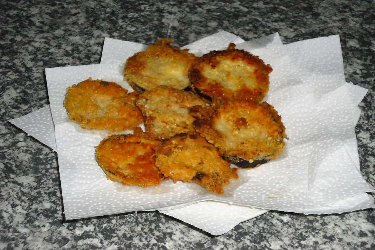Fríe las berenjenas hasta que estén doradas por ambos lados. Luego ponlas sobre un papel absorbente para eliminar el exceso de aceite