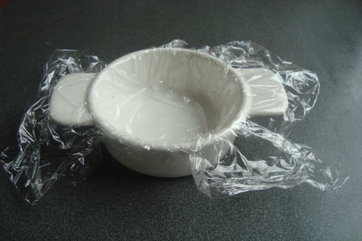 Forrar el interior de un vaso o pocillo o una taza con papel alusa plast.
