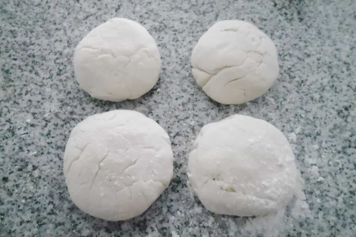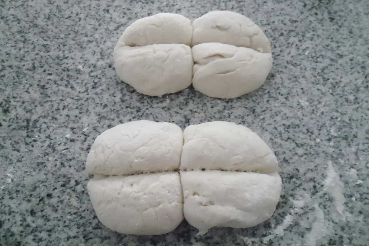 Una vez transcurrido ese tiempo, forma cuidadosamente 4 bollos con la masa y únelos de a pares.