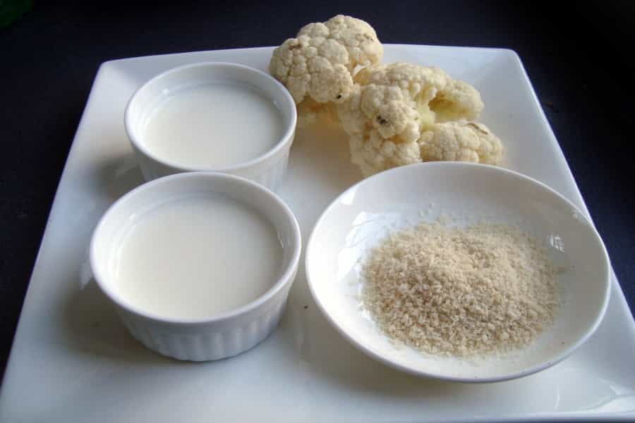 Cocinar a fuego medio, revolviendo constantemente hasta que la coliflor y el panko tomen un color dorado. Incorporar la coliflor cocida y picada, crema y leche. Revolver suavemente hasta integrar bien. Sazonar con sal, pimienta y nuez moscada a gusto, apagar y servir.