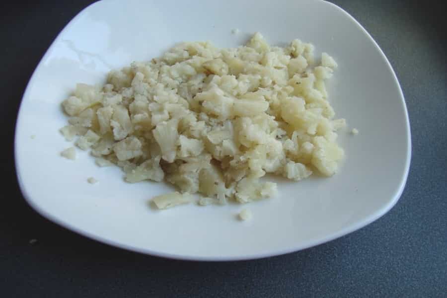 Cortar la coliflor en racimos, lavar y escurrir. Cocinar ½ coliflor en abundante agua caliente, por 15 minutos o hasta que esté blanda. Escurrir y picar la coliflor en trozos pequeños. Reservar.