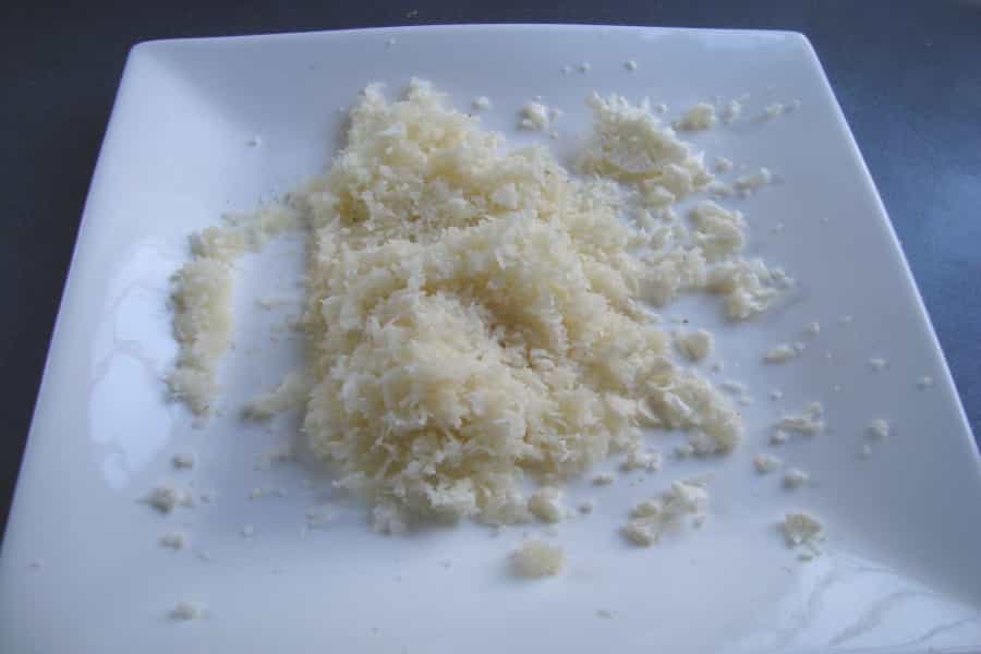 Rallar la coliflor cruda restante por la parte gruesa del rallador hasta formar granos.