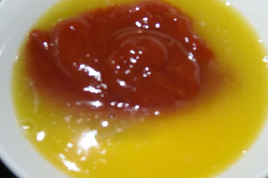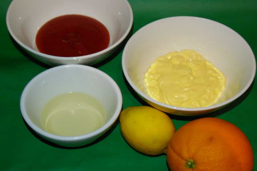 Mezclamos la salsa de tomates fritos con la mayonesa. La salsa debe estar fría al momento de la mezcla.