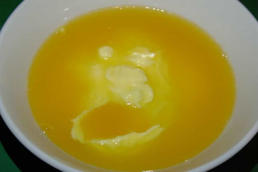 Luego agregamos el coñac, el zumo de limón y de naranja y mezclamos bien.