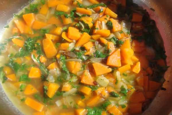 En una olla con aceite de oliva caliente sofreír por 3 minutos a fuego medio la zanahoria y cebolla, agrega el caldo y el cilantro lavado y picado, dejar que hierva, cocinar hasta que las zanahorias estén blandas, aproximadamente 10 minutos. Retirar del fuego y enfriar.