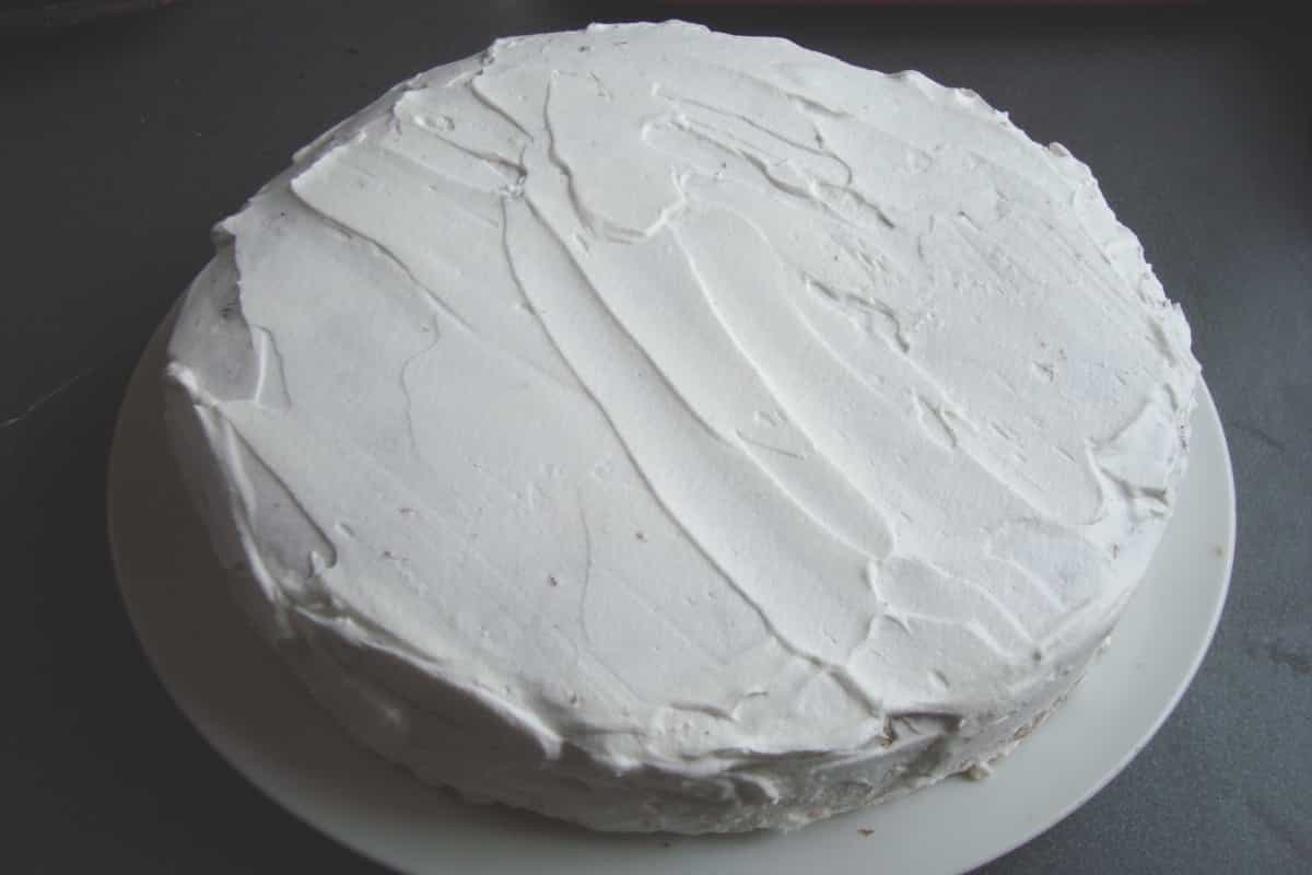 Cubrir el bizcocho de la torta con una fina capa de crema.