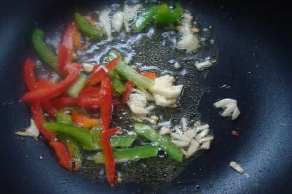 -1 paquete de espagueti (400 gramos -½ kilo de filetes de pollo -400 centímetros cúbicos (cc) de crema -2 dientes de ajo -½ morrón rojo -½ morrón verde -Ciboulette -Aceite de oliva -Sal - Pimienta Preparación Cocinar los espagueti según las instrucciones del envase, logrando una cocción al dente, escurrir, agregarles aceite de oliva y reservar. Cortar el pollo en trozos pequeños, reservar. En un sartén con aceite de oliva, sofreír por 5 minutos a fuego medio, los morrones cortados en tiras y los dientes de ajo picados finamente.